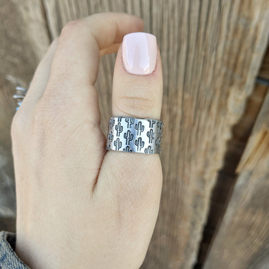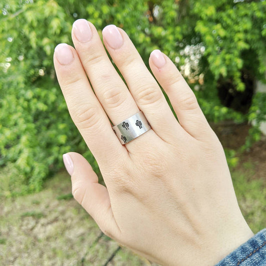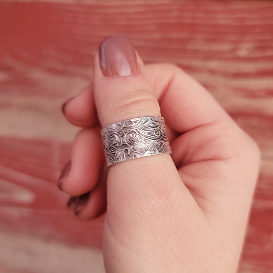 Wide Paisley Floral Print Tarnished Western Ring - Country & Western Style