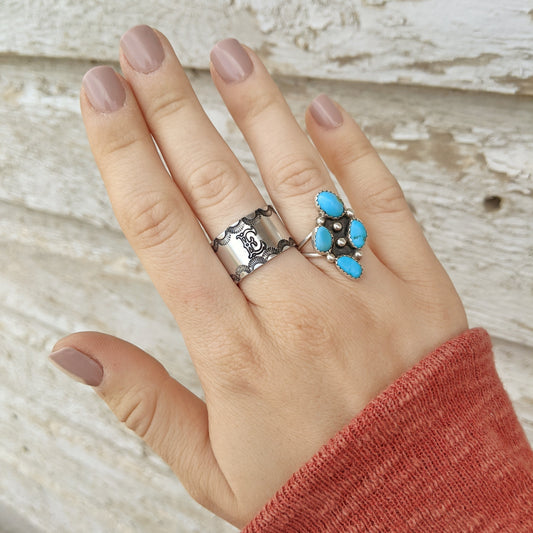 Baja Turquoise & Sterling Silver Floral Statement Ring
