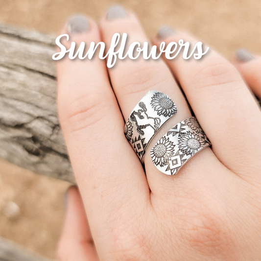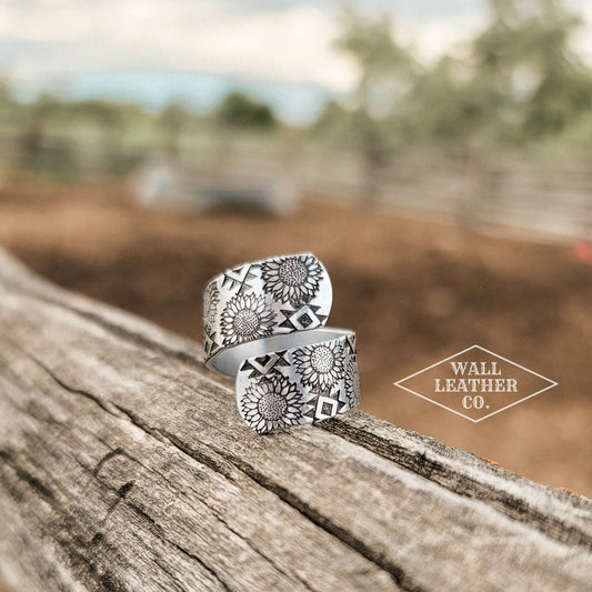 Aztec Sunflower Western Wrap Ring