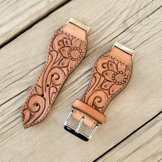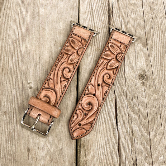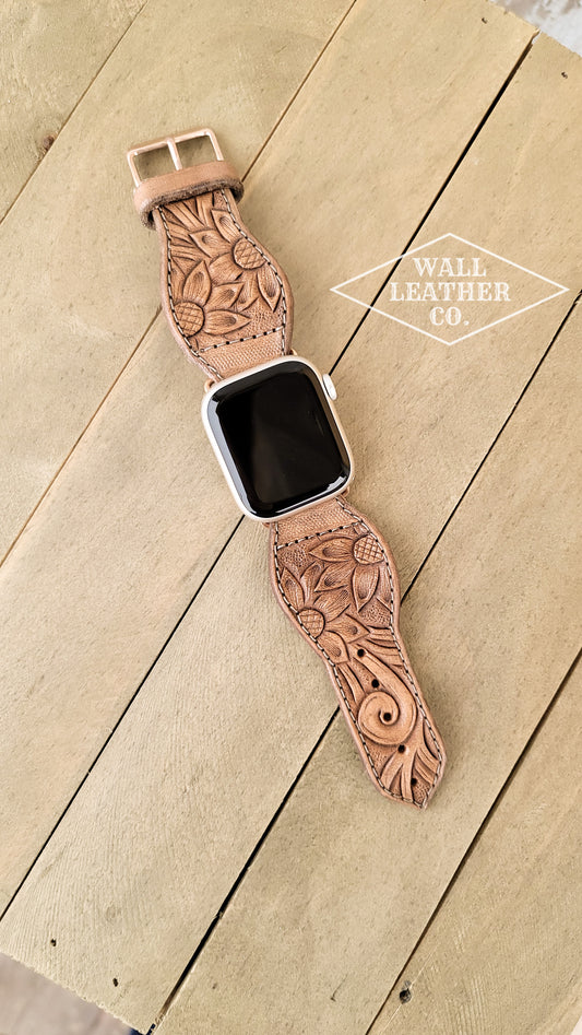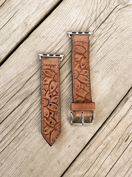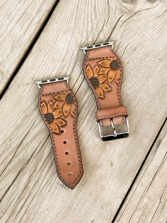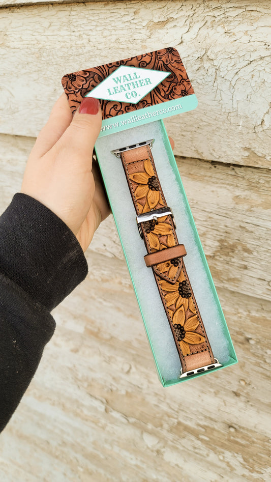 Sunflower & Scrollwork Leather Smart Watch Band