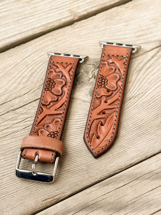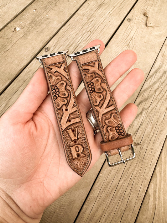 Personalized Floral Leather Smart Watch Band