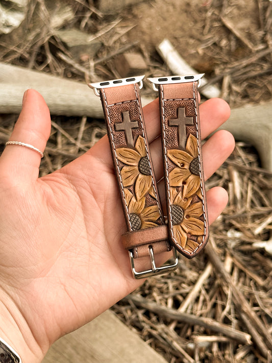Sunflowers & Cross Painted Leather Smart Watch Band