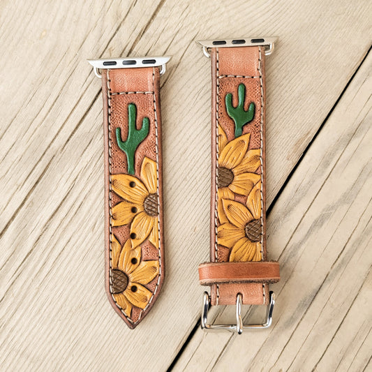 Sunflower & Cactus Leather Smart Watch Band